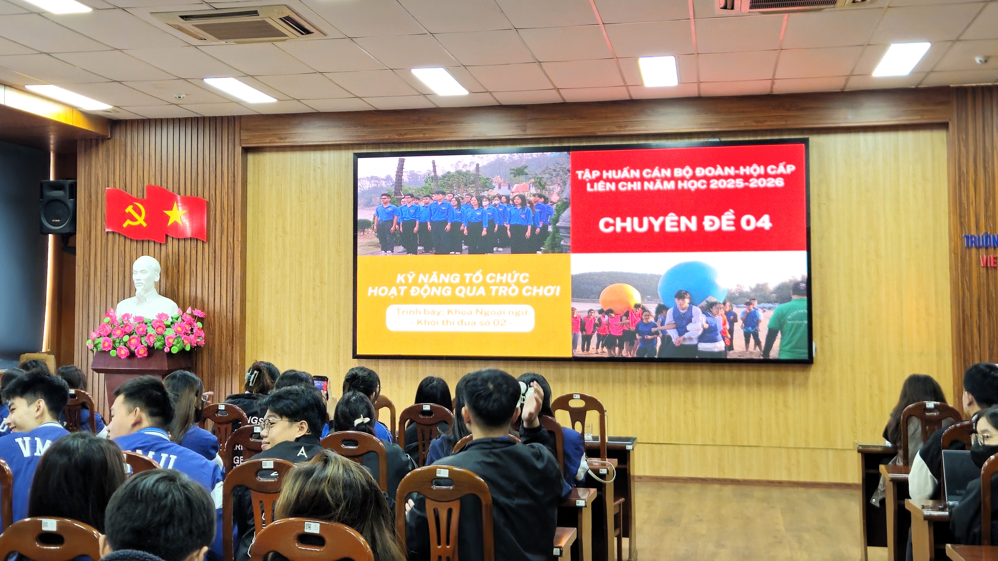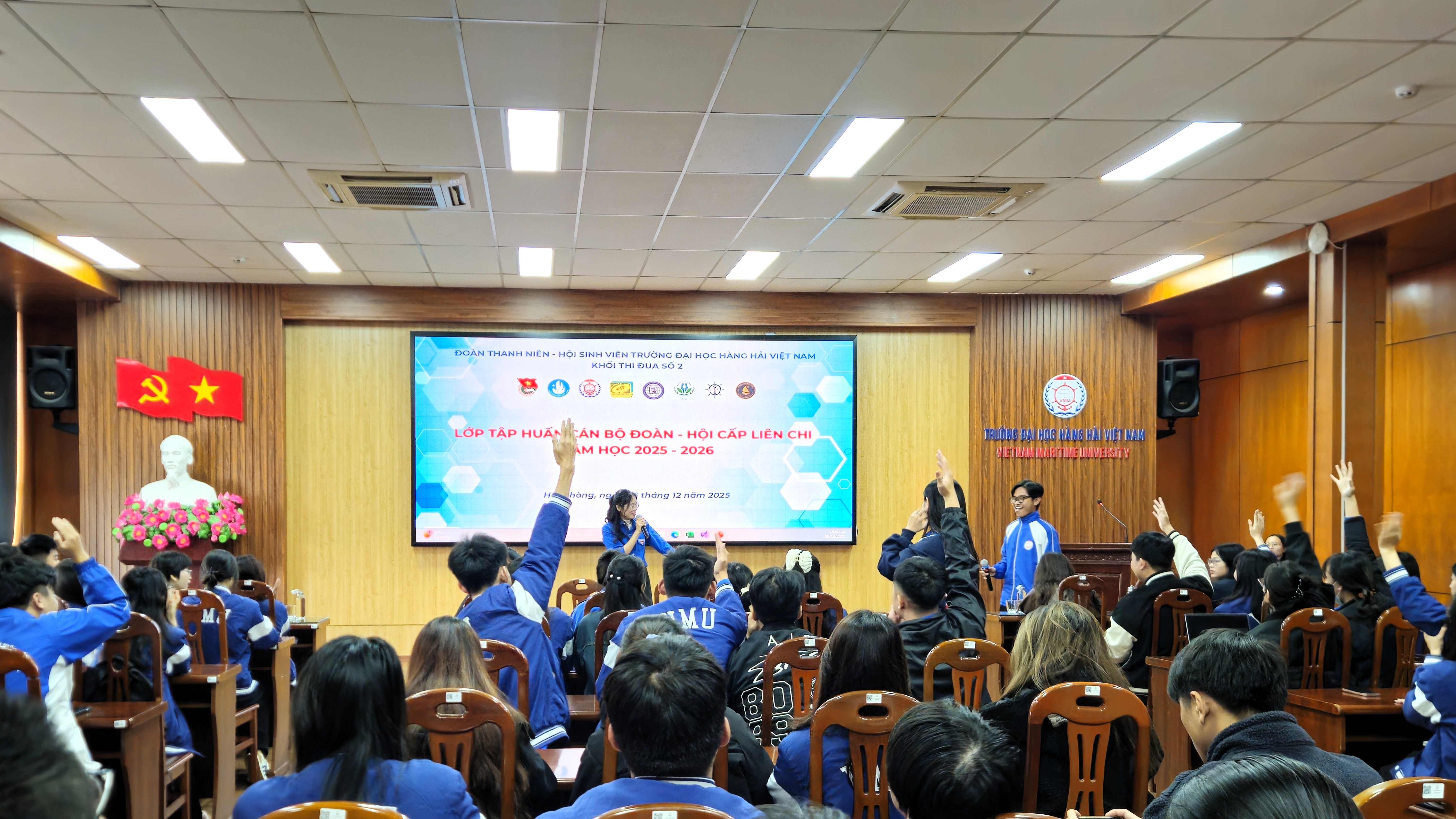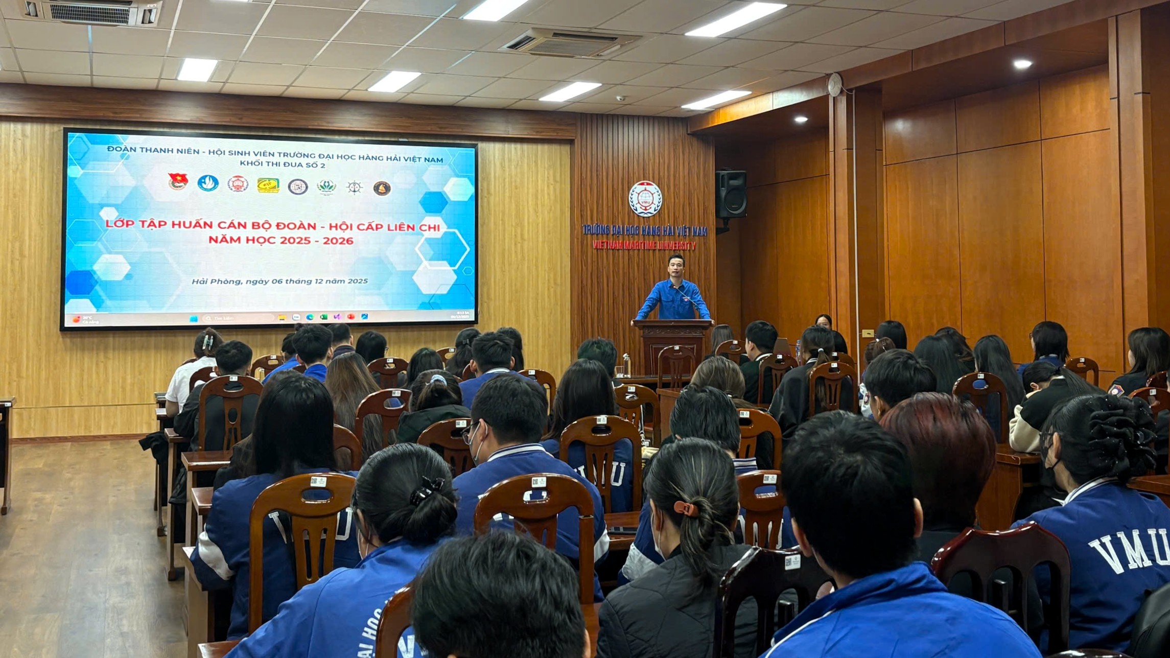 Sáng thứ bảy (06/12/2025), Khối thi đua số 2 đã tổ chức thành công Lớp tập huấn Cán bộ Đoàn - Hội cấp Liên chi, với sự tham gia của hơn 120 đồng chí cán bộ Đoàn - Hội đến từ các đơn vị: Khoa Công nghệ thông tin, Khoa Ngoại ngữ, Viện Môi trường, Khoa Đóng tàu và Viện Đào tạo Chất lượng cao.