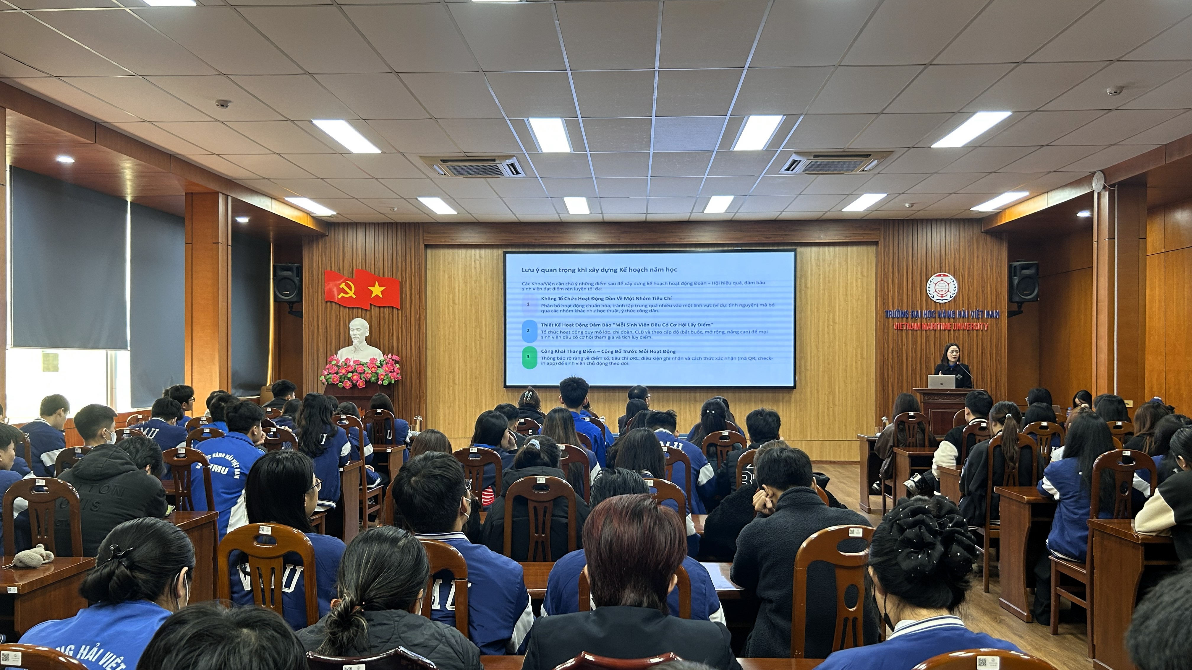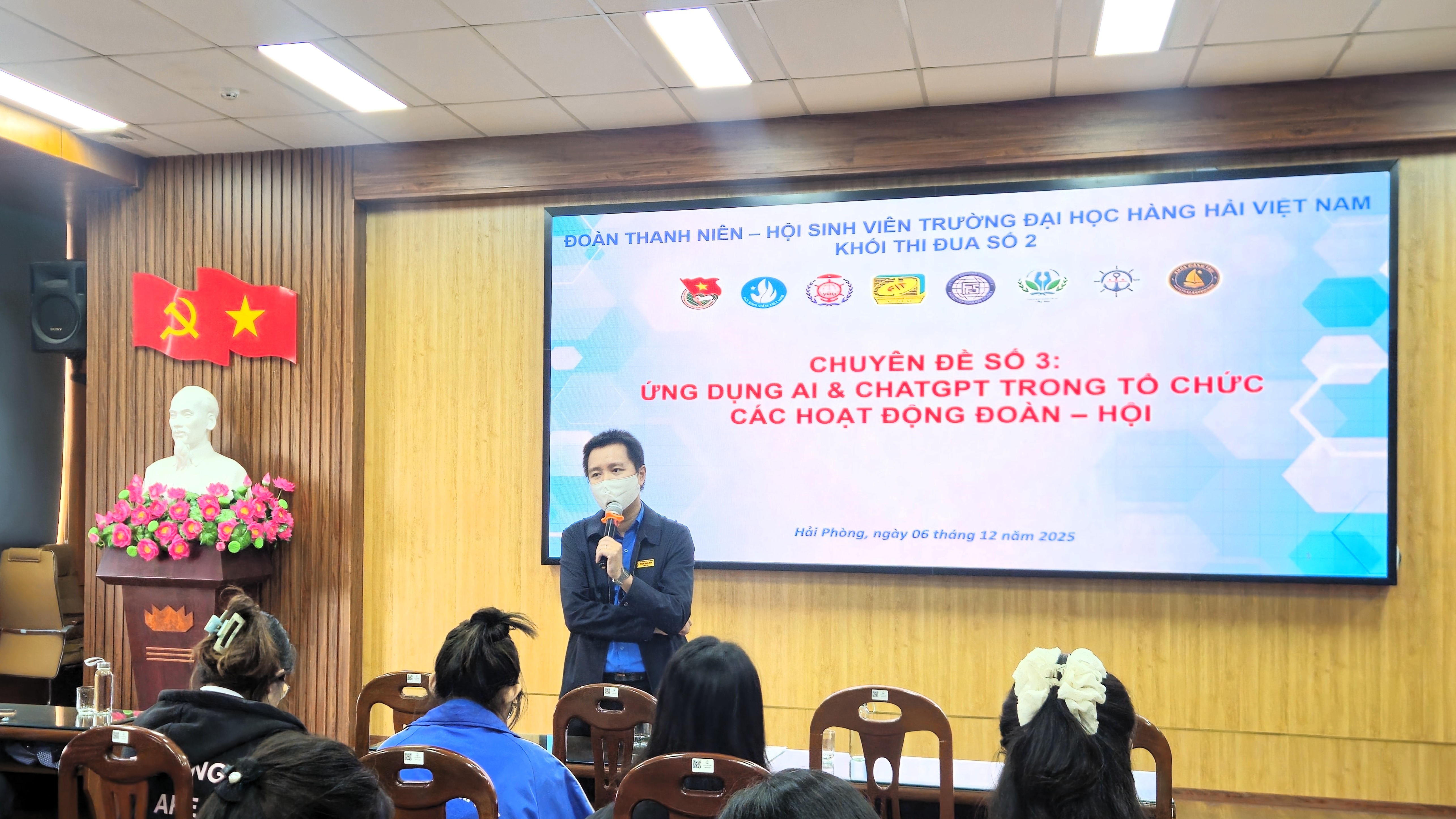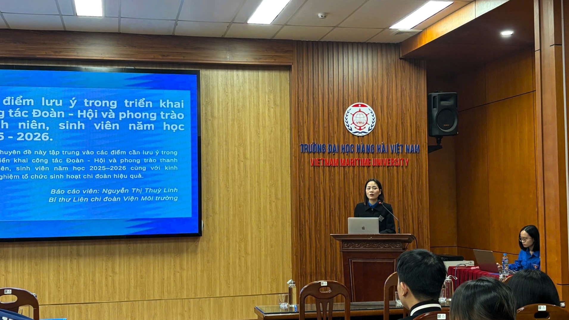 Sáng thứ bảy (06/12/2025), Khối thi đua số 2 đã tổ chức thành công Lớp tập huấn Cán bộ Đoàn - Hội cấp Liên chi, với sự tham gia của hơn 120 đồng chí cán bộ Đoàn - Hội đến từ các đơn vị: Khoa Công nghệ thông tin, Khoa Ngoại ngữ, Viện Môi trường, Khoa Đóng tàu và Viện Đào tạo Chất lượng cao.