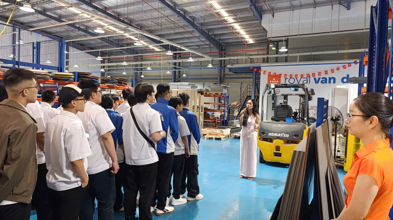 Tại điểm đến, sinh viên và giảng viên của Khoa đã có cơ hội trực tiếp tìm hiểu môi trường làm việc chuyên nghiệp, quan sát quy trình vận hành và lắng nghe những chia sẻ từ phía doanh nghiệp. Đoàn đã trực tiếp tham quan khu vực sản xuất tại Công ty Vander Leun, tìm hiểu quy trình làm việc thực tế, đồng thời tham gia buổi trao đổi, hội thảo tại hội trường với đại diện doanh nghiệp. Những câu chuyện thực tế, những yêu cầu cụ thể về kỹ năng và tư duy nghề nghiệp đã giúp các bạn sinh viên hình dung rõ hơn về bức tranh toàn cảnh của ngành, từ đó định hình cho mình hướng đi phù hợp ngay từ khi còn trên ghế nhà trường.
