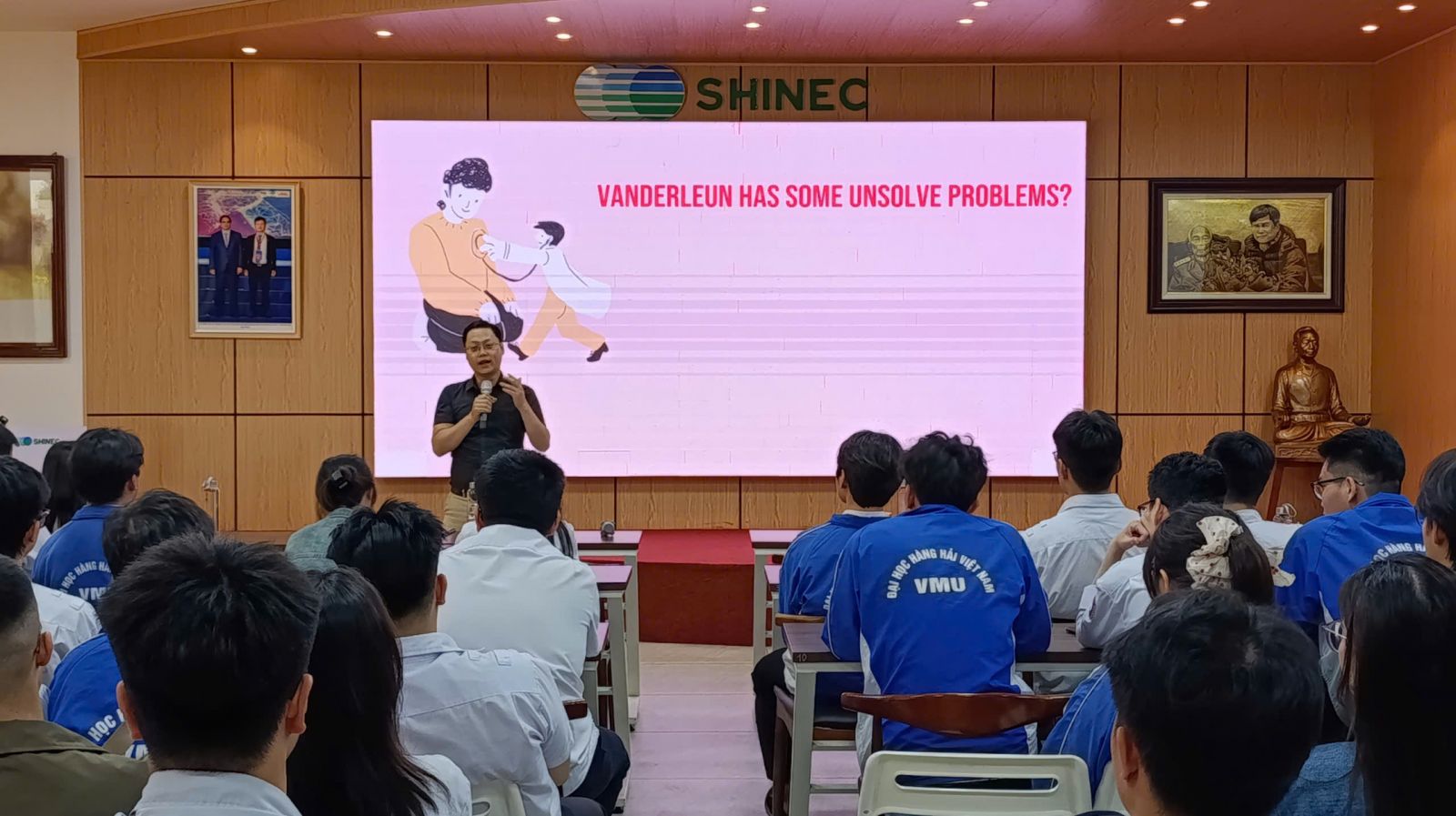 Trong buổi hội thảo tại hội trường, cô Hoàng Thị Hồng Điệp – Tổng Giám đốc Công ty TNHH Van Der Leun Việt Nam, doanh nghiệp đang hoạt động tại Khu công nghiệp Nam Cầu Kiền, đồng thời là cựu sinh viên của Khoa Công nghệ Thông tin, Trường Đại học Hàng hải Việt Nam – đã mang đến những câu chuyện gần gũi và truyền cảm hứng. Từ chính hành trình trưởng thành của mình, cô đã chia sẻ về môi trường làm việc, các hoạt động thực tế tại doanh nghiệp cũng như những cơ hội phát triển dành cho sinh viên CNTT. Những lời chia sẻ ấy không chỉ giúp các bạn hiểu rõ hơn về con đường phía trước mà còn tiếp thêm động lực để tự tin theo đuổi đam mê và khẳng định bản thân.