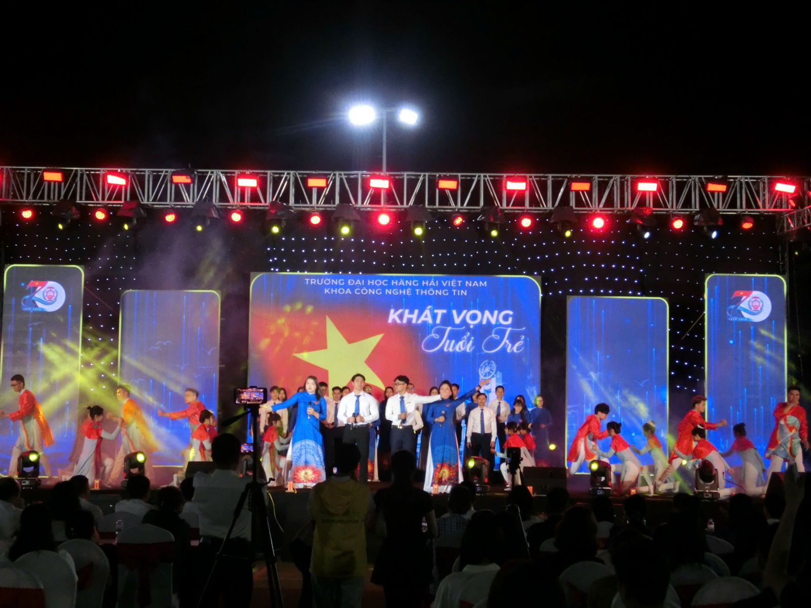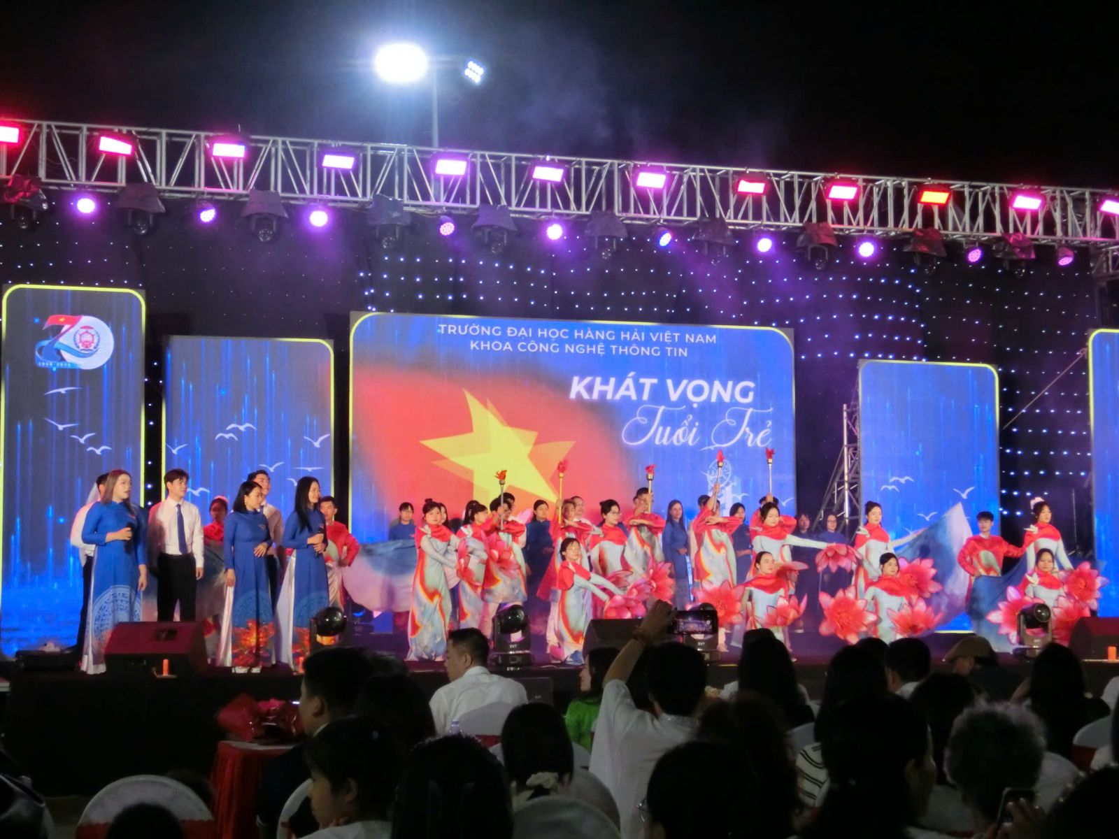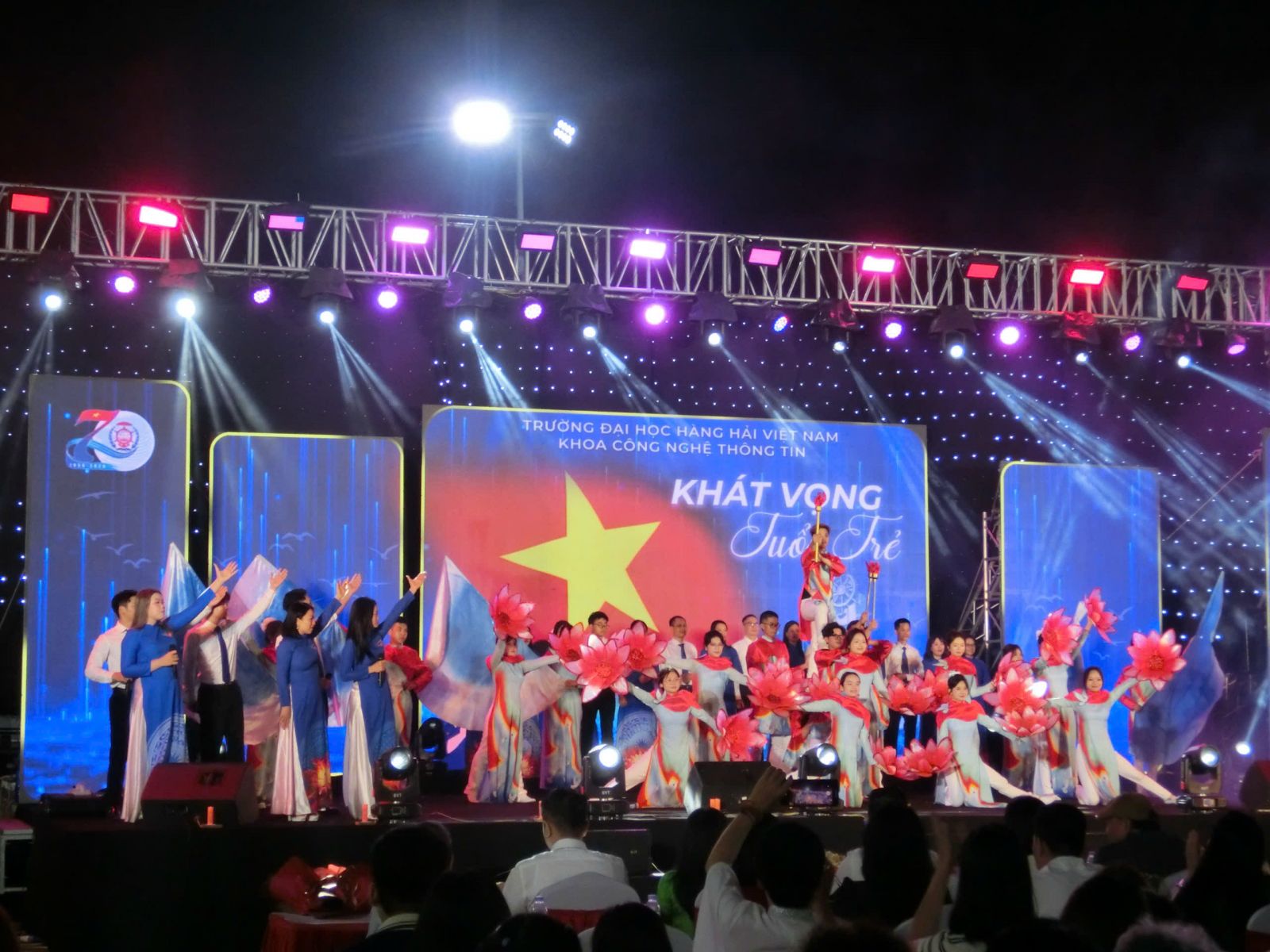 Trong không khí sôi động của hội trại chào mừng 70 năm thành lập Trường Đại học Hàng hải Việt Nam, tiết mục “Khát vọng tuổi trẻ” do chính sinh viên và giảng viên Khoa Công nghệ Thông tin cùng nhau trình bày đã trở thành một điểm nhấn đầy cảm xúc.