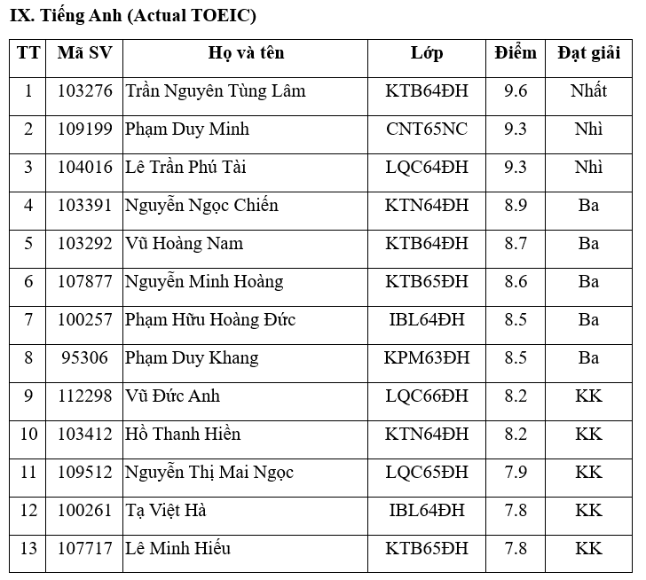 Giải Ba môn Tiếng Anh (Actual TOEIC): Bạn Phạm Duy Khang (lớp CNT63ĐH).
