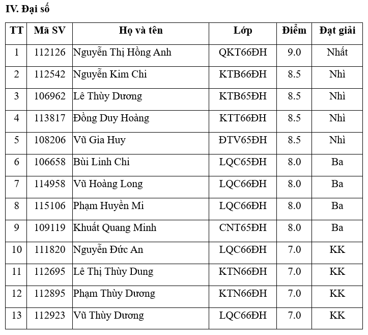 Dưới đây là kết quả của cuộc thi Olympic cấp trường tại Trường Đại học Hàng Hải năm học 2025 - 2026: