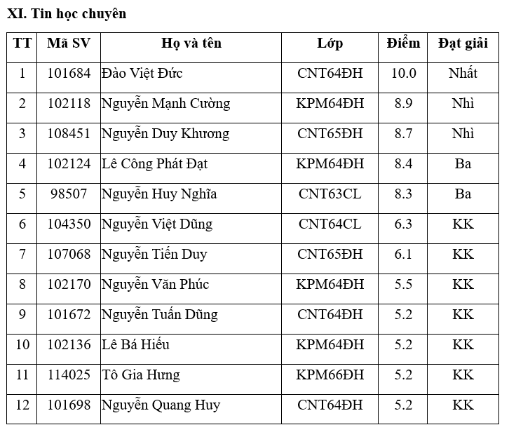 Mỗi giải thưởng đạt được đều là minh chứng sinh động cho quá trình học tập nghiêm túc, tinh thần cầu tiến và sự nỗ lực không ngừng của các bạn sinh viên. Thành tích hôm nay không chỉ là niềm tự hào của mỗi cá nhân mà còn góp phần tô đậm thêm truyền thống học tập và rèn luyện của Khoa Công nghệ Thông tin.
