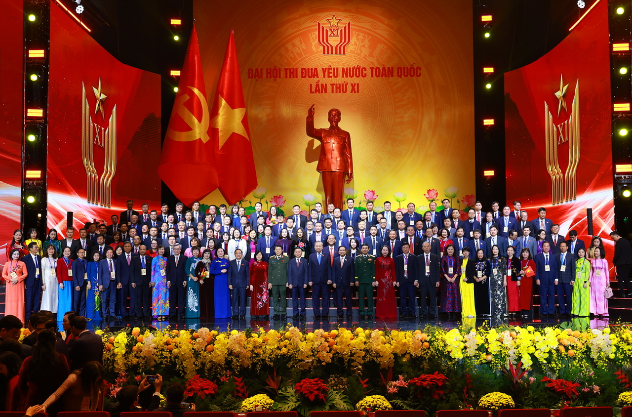 Bộ trưởng Bộ Xây dựng Trần Hồng Minh, PGS.TS. Phạm Xuân Dương - Hiệu trưởng Trường Đại học Hàng hải Việt Nam cùng các đại biểu thuộc Bộ Xây dựng tại Đại hội Thi đua yêu nước toàn quốc lần thứ XI