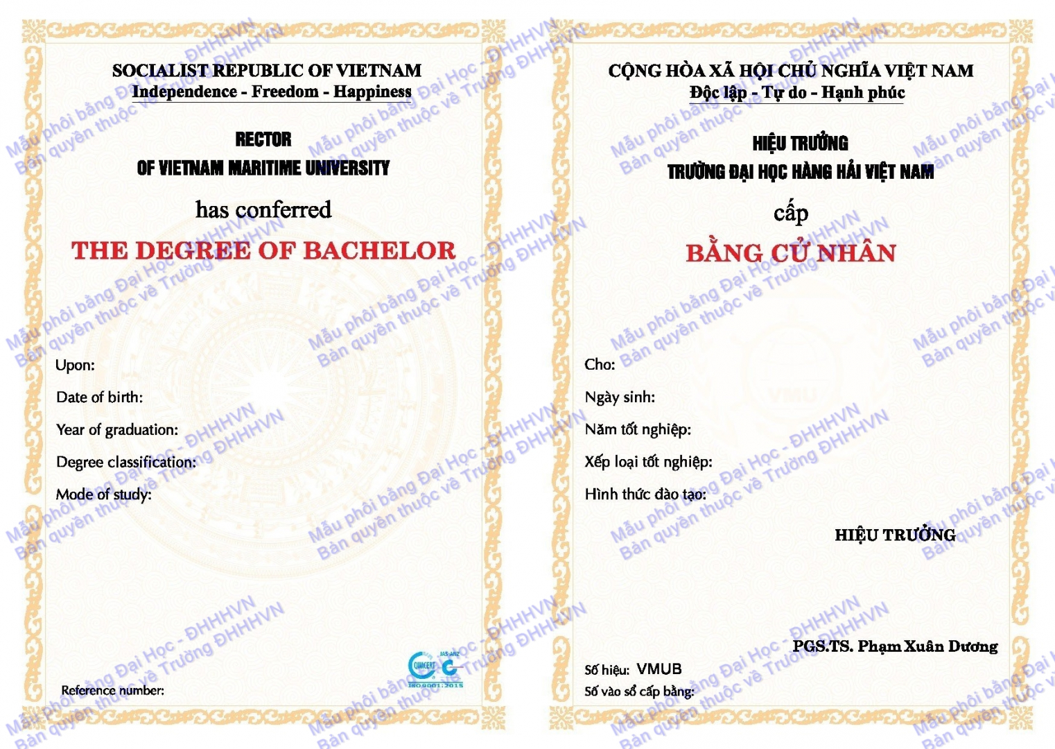 Mẫu văn bằng Đại học của Trường Đại học Hàng hải Việt nam