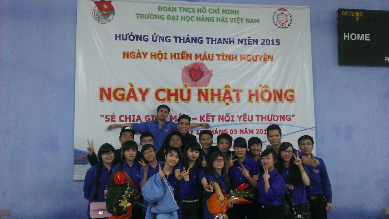 Thực hiện chỉ đạo của Thành đoàn Hải Phòng về việc triển khai các hoạt động trong Tháng Thanh niên 2015, thực hiện chỉ đạo của Ban chỉ đạo Vận động Hiến máu tình nguyện thành phố Hải Phòng và đề nghị của Trung tâm Huyết học truyền máu - Bệnh viện Việt Tiệp về việc tổ chức hoạt động Hiến máu nhân đạo trong tháng 3 năm 2015; Được sự chỉ đạo của Đảng ủy, Ban Giám hiệu Nhà trường, nhằm phát huy tinh thần xung kích tình nguyện, tương thân tương ái của tuổi trẻ, sáng ngày 15 tháng 3 năm 2015, Đoàn TNCS Hồ Chí Minh Trường Đại học Hàng hải Việt Nam đã tổ chức Ngày hội Hiến máu tình nguyện mang tên “Ngày Chủ Nhật Hồng” – hoạt động năm trong chuỗi hoạt động hưởng ứng Tháng Thanh niên năm 2015.