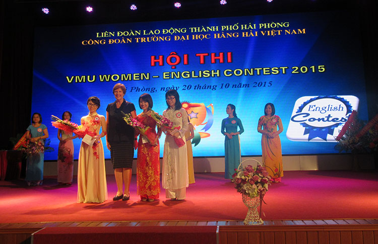 Sau phần tặng hoa chúc mừng cho nữ CB, GV, CNV với phòng trào “Giỏi việc nước, đảm việc nhà” giai đoạn 2011-2015 là Hội thi "VMU Women - English contest". Cuộc thi Tiếng Anh dành cho nữ cán bộ viên chức Trường Đại học Hàng hải Việt Nam đã đi qua 2 vòng thi. Vòng Sơ khảo đã được tổ chức vào ngày 02 tháng 10 với 15 thí sinh. Sau vòng Sơ khảo, Ban Giám khảo đã lựa chọn ra 8 thí sinh có số điểm cao nhất để tham dự vào vòng Chung kết.