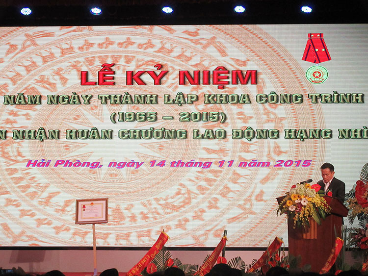 Sáng ngày 14/11/2015, tại Hội trường A8, Khoa Công trình Trường Đại học Hàng hải Việt Nam đã long trọng tổ chức Lễ kỷ niệm 50 năm ngày thành lập (15/8/1965 – 15/8/2015) và đón nhận Huân chương Lao động hạng nhì. Đến dự có các đồng chí Đỗ Trung Thoại - Phó Chủ tịch UBND Thành phố Hải Phòng, Ông Hoàng Hồng Giang - Cục trưởng Cục Đường thủy nội địa Việt Nam, Nguyên Phó Chủ nhiệm Khoa Công trình, Ông Vũ Anh Dũng – Vụ phó Vụ Tổ chức cán bộ, thường trực Hội đồng thi đua khen thưởng Bộ GTVT, Ông Hoàng Xuân Nghĩa- Trưởng phòng thi đua khen thưởng Bộ GTVT, các Sở, Ban, Ngành.