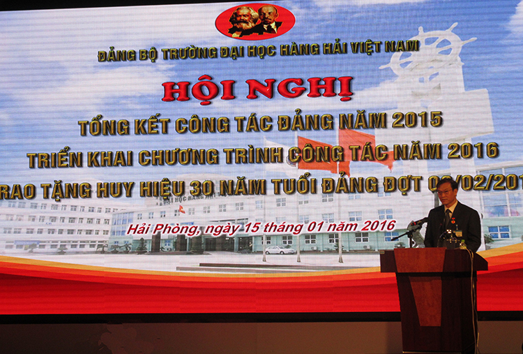 Sáng ngày 15/01/2016, Đảng uỷ Trường Đại học Hàng hải Việt Nam tổ chức Hội nghị tổng kết công tác xây dựng Đảng năm 2015, triển khai chương trình công tác năm 2016; trao tặng Huy hiệu Đảng đợt 03/02/2016.