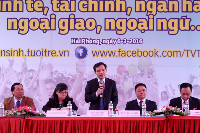 Sáng ngày 06 tháng 3 năm 2016, tại Khu Hiệu bộ, Trường Đại học Hàng hải Việt Nam phối hợp cùng Báo tuổi trẻ, Bộ Giáo dục và Đào tạo, Sở Giáo dục và Đào tạo Thành phố Hải Phòng cùng Thành đoàn Hải Phòng tổ chức chương trình “Tư vấn tuyển sinh- Hướng nghiệp năm 2016”. Tham dự chương trình có: PGS.TS Mai Văn Trinh - Cục trưởng Cục khảo thí và kiểm định chất lượng giáo dục, Bộ GD-ĐT, PGS-TS Nguyễn Thị Kim Phụng - Vụ trưởng Vụ Giáo dục đại học, Bộ GD-ĐT, ThS Nam Nhật Minh - Trưởng phòng tuyển sinh và công nhận văn bằng, Cục khảo thí và kiểm định chất lượng giáo dục, Bộ GD-ĐT cùng các thầy cô là lãnh đạo các trường đại học, cao đẳng trong và ngoài thành phố về dự.