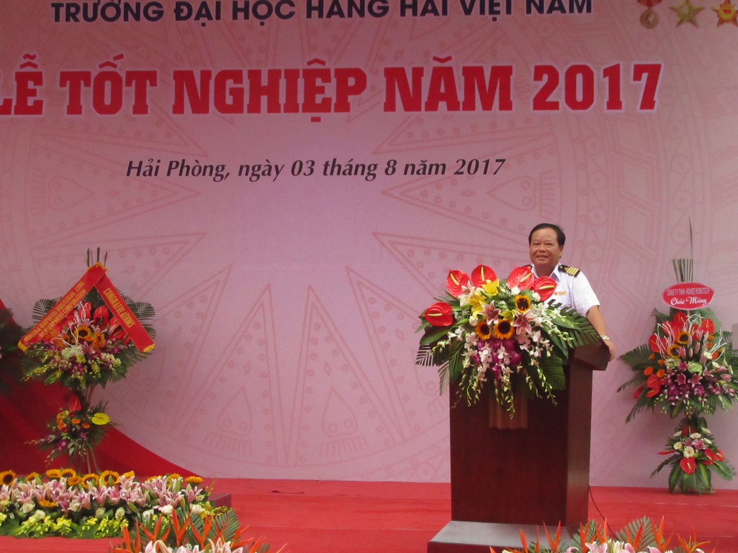 08h00 ngày 03/08/2017 tại sân Nhà A1, Trường Đại học Hàng hải Việt Nam đã long trọng tổ chức Lễ Tốt nghiệp và trao bằng năm 2017 cho 1504 tân tiến sĩ, thạc sĩ, cử nhân, kỹ sư. Tới dự với buổi lễ có NGND.GS.TS Lương Công Nhớ - Bí thư Đảng ủy, Hiệu trưởng Nhà trường; các đồng chí trong BCH Đảng ủy, Ban Giám hiệu, Công đoàn, Đoàn TN, Thủ trưởng các đơn vị, Ban Chủ nhiệm, Giáo vụ các Khoa, Viện, lãnh tạo các công ty , doanh nghiệp trong và ngoài nước, cựu sinh viên nhiều thế hệ của Nhà trường và các tân tiến sĩ, thạc sĩ, cử nhân, kỹ sư cùng đông đảo bạn bè, gia đình đến chia vui và chúc mừng.