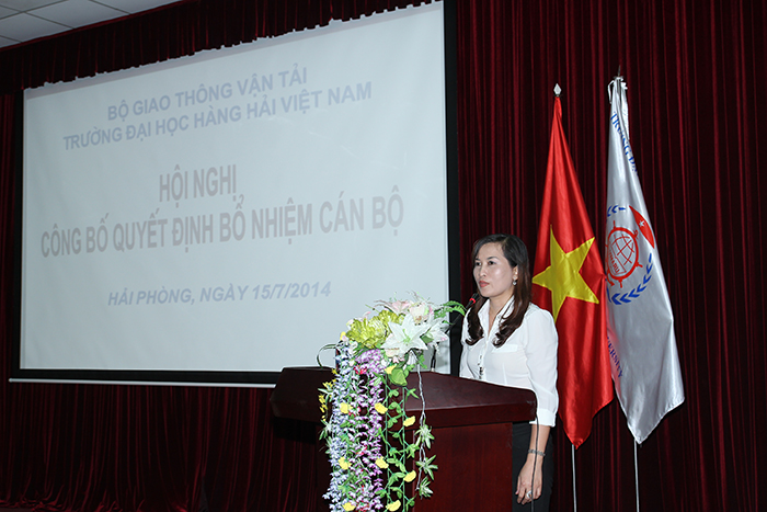 14h00 ngày 15 tháng 7 năm 2014, tại Phòng HTQT số 3 Trường Đại học Hàng hải Việt Nam đã tổ chức Lễ công bố Quyết định bổ nhiệm cán bộ. Tới dự có PGS.TS Lương Công Nhớ- Bí thư Đảng ủy, Hiệu trưởng Nhà trường; các đồng chí trong Ban chấp hành Đảng ủy, Ban Giám hiệu, Ban Chấp hành Công đoàn, Đoàn Thanh niên, Thủ trưởng các đơn vị trong Trường cùng toàn thể các đồng chí CB, GV, CNV Phòng Công tác sinh viên, Khoa Ngoại ngữ, Khoa Kinh tế và Khoa Cơ khí.