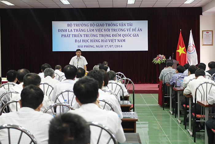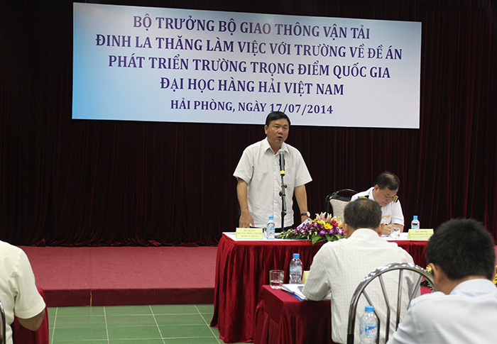 Phát biểu kết luận buổi làm việc, Bộ trưởng Đinh La Thăng hoan nghênh và đánh giá cao sự chuẩn bị của Trường Đại học Hàng hải Việt Nam về nội dung Đề án “Xây dựng Trường Đại học Hàng hải Việt Nam thành trường trọng điểm Quốc gia” cũng như báo cáo về các kết quả đã đạt được của Nhà trường trong những năm qua và phương hướng, nhiệm vụ trọng tâm trong thời gian tới.