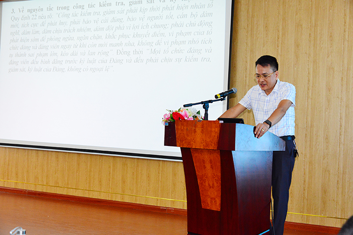 Đồng chí Phạm Đức Thái, Ủy viên UBKT Thành ủy trình bày
