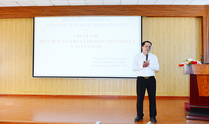 Đồng chí ThS. Nguyễn Vương Long, Giảng viên chuyên ngành Xây dựng Đảng của Trường Chính trị Tô Hiệu trình bày