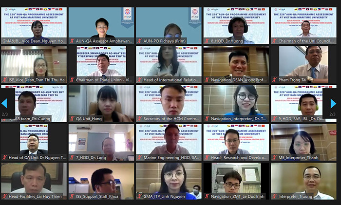 08h00 (theo giờ Việt Nam) ngày 20/8/2021, tại Trường Đại học Hàng hải Việt Nam đã diễn ra Phiên bế mạc đợt đánh giá ngoài từ xa của 04 chương trình đào tạo theo tiêu chuẩn AUN-QA lần thứ 228. Phiên bế mạc tiếp tục được tổ chức theo hình thức trực tuyến với sự tham dự của TS. Choltis Dhirathiti - Giám đốc điều hành Mạng lưới các Trường Đại học Đông Nam Á (AUN); GS.TS Rosemary Seva (Philippines) - Trưởng đoàn đánh giá AUN-QA; các đánh giá viên chính gồm: PGS.TS. Tan Kay Chuan (Singapore), GS.TS. Patricia Empleo (Philippines), GS.TS. Rosemary Seva (Philippines), PGS.TS. Pornpun Prajaknate (Thái Lan), GS.TS. Rohaida Mohd. Saat (Malaysia), PGS.TS. Amphawan Julsereewong (Thái Lan), TS. Maria Elissa J.Lao (Philippines), TS. Attachai Ueranantasun (Thái Lan); Ban Thư ký AUN-QA gồm: bà Monsiri Chintanavisit và ông Korn Ratanagosoom.