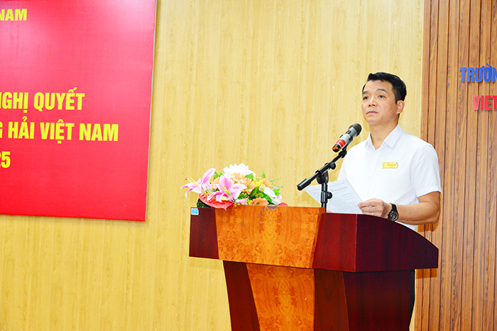 Phát biểu chỉ đạo Hội nghị, đồng chí Lê Trí Vũ, Uỷ viên Ban Thường vụ Thành ủy, Trưởng Ban Dân vận Thành ủy ghi nhận, đánh giá cao những kết quả Đảng bộ Trường Đại học Hàng hải Việt Nam đã đạt được trong nửa đầu nhiệm kỳ 2020-2025 và đề nghị Đảng ủy Trường tiếp tục lãnh đạo, chỉ đạo hoàn thành tốt các chỉ tiêu, nhiệm vụ từ nay đến hết nhiệm kỳ 2020-2025; tập trung vào một số nội dung sau: Tiếp tục thực hiện nghiêm quy chế làm việc, đảm bảo nguyên tắc trong sinh hoạt Đảng, nêu cao tinh thần trách nhiệm của cán bộ, đảng viên, nhất trách nhiệm nêu gương của người đứng đầu, giữ vững đoàn kết nội bộ. Xây dựng kế hoạch hành động cụ thể, khả thi để thực hiện mục tiêu xây dựng Trường Đại học Hàng hải Việt Nam là trường trọng điểm quốc gia, nghiên cứu, đào tạo phục vụ phát triển kinh tế biển bền vững theo Nghị quyết số 30-NQ/TW, ngày 23/11/2022 của Bộ Chính trị về phát triển kinh tế - xã hội và bảo đảm quốc phòng, an ninh vùng đồng bằng sông Hồng đến năm 2030, tầm nhìn đến năm 2045; trong đó, xác định một số nhiệm vụ cần làm ngay và nội dung tầm nhìn dài hạn; tranh thủ sự ủng hộ, giúp đỡ của các bộ, ngành Trung ương và ban, sở ngành thành phố, tạo thành sức mạnh tổng hợp trong quá trình tổ chức thực hiện. Chú trọng công tác kết nạp đảng viên, giáo dục chính trị tư tưởng cho sinh viên, tạo điều kiện cho Đoàn Thanh niên, Hội Sinh viên nhà trường tổ chức các diễn đàn, sân chơi bổ ích để tập hợp, giáo dục, định hướng và bồi dưỡng kỹ năng sống cho sinh viên.