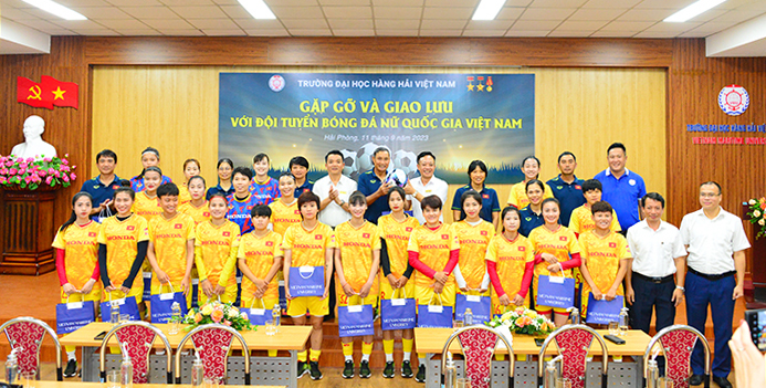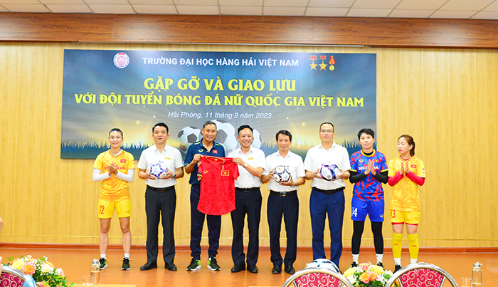 Trường Đại học Hàng hải Việt Nam tặng quà cho Ban huấn luyện và các cầu thủ của Đội tuyển bóng đá Nữ quốc gia Việt Nam