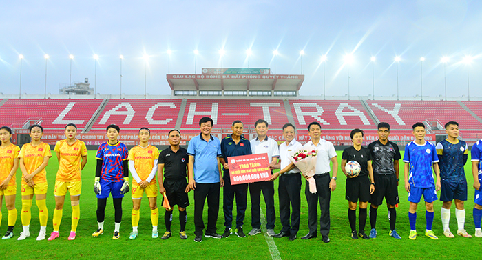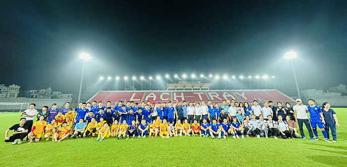 Nằm trong khuôn khổ của Chương trình gặp gỡ là trận giao hữu bóng đá giữa Đội tuyển bóng đá Nữ quốc gia Việt Nam và Đội tuyển Nam sinh viên Trường Đại học Hàng hải Việt Nam lúc 17h00 trên sân Lạch Tray. Mặc dù thời tiết có mưa nhưng vẫn có khoảng hơn 3.000 người hâm mộ bóng đá, khán giả, cán bộ, giảng viên, học sinh, viên viên đến tham dự và cổ vũ cho hai đội tuyển. Trận đấu được truyền hình trực tiếp trên Fanpage Sân Cỏ Hải Phòng.