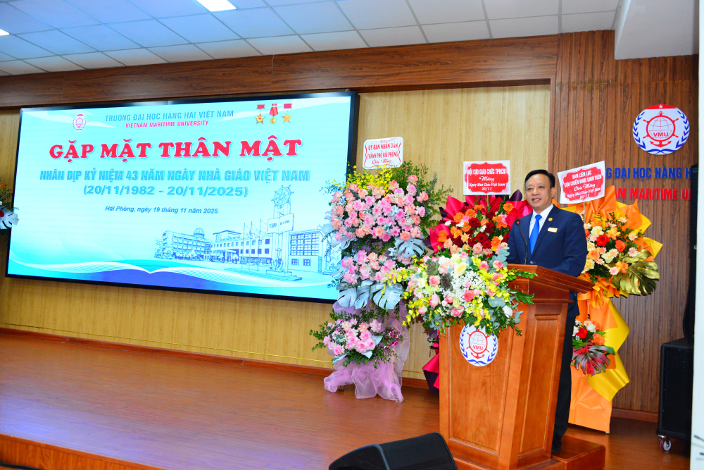 Nhân dịp này, Hiệu trưởng Nhà trường cũng điểm qua một số nét nổi bật của Trường về công tác tuyển sinh & đào tạo, quan hệ quốc tế, kiểm định chất lượng cơ sở giáo dục và các chương trình đào tạo, nghiên cứu khoa học, cùng nhiều lĩnh vực khác. Thầy Hiệu trưởng Phạm Xuân Dương tự hào nhấn mạnh: Ngày 24/10/2025, Trường Đại học Hàng hải Việt Nam vinh dự được tham dự Đại hội Thi đua yêu nước Bộ Xây dựng lần thứ I (2025-2030) và đón nhận Huân chương Lao động hạng Nhất - phần thưởng cao quý của Đảng và Nhà nước, ghi nhận những đóng góp bền bỉ của Nhà trường trong giáo dục, đào tạo, nghiên cứu khoa học và phát triển nguồn nhân lực chất lượng cao phục vụ cho ngành hàng hải và đất nước. Đặc biệt, trong bối cảnh Nhà trường đang triển khai thực hiện Đề án “Xây dựng Trường Đại học Hàng hải Việt Nam là trường trọng điểm quốc gia về đào tạo, nghiên cứu phục vụ phát triển bền vững kinh tế biển giai đoạn đến 2030, tầm nhìn đến 2045” đã được Thủ tướng Chính phủ phê duyệt tại Quyết định số 1901/QĐ-TTg ngày 05/9/2025, mở ra những cơ hội phát triển mới, đồng thời đòi hỏi thầy và trò Nhà trường phải nỗ lực hơn nữa để đáp ứng vai trò và trách nhiệm trong giai đoạn mới.