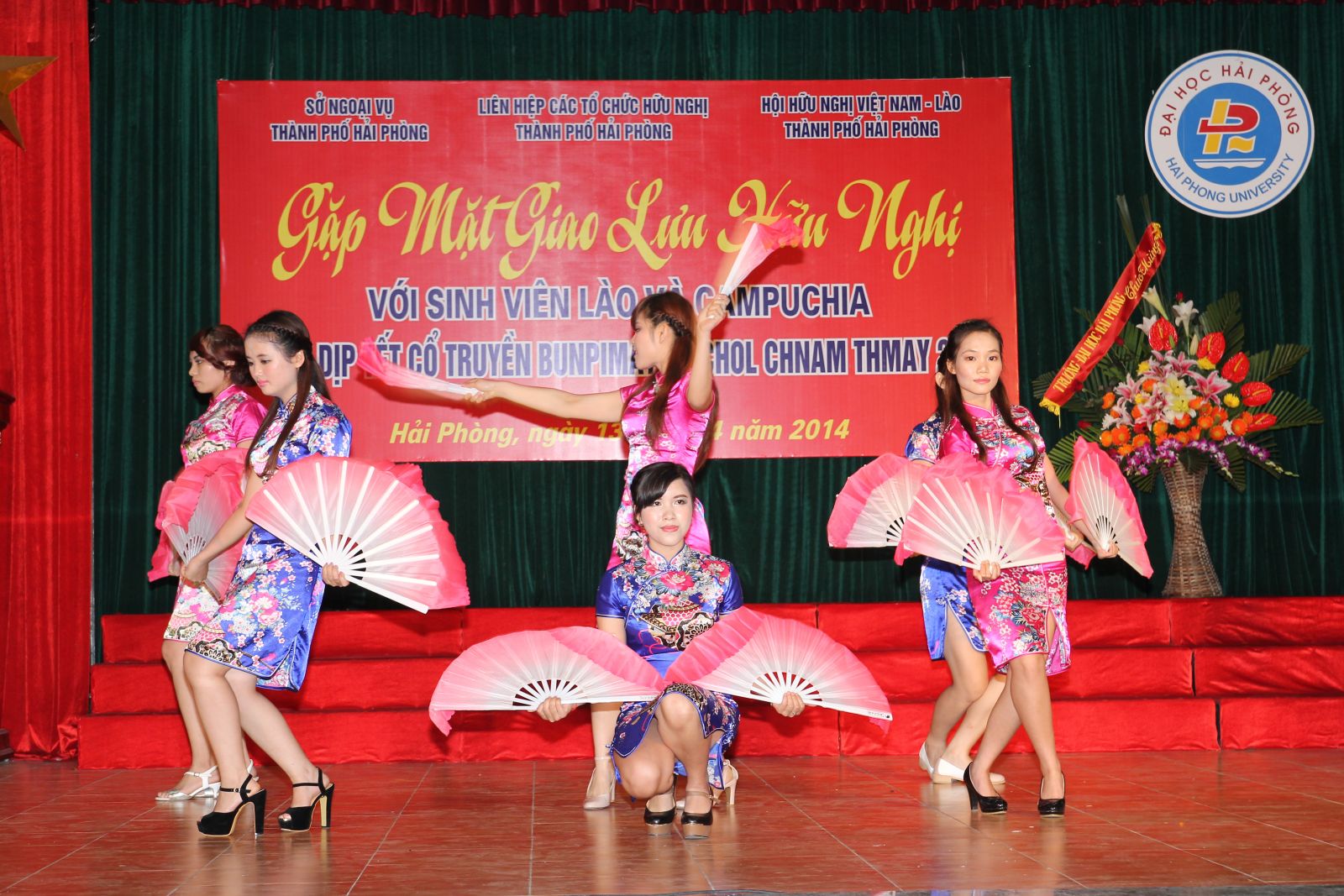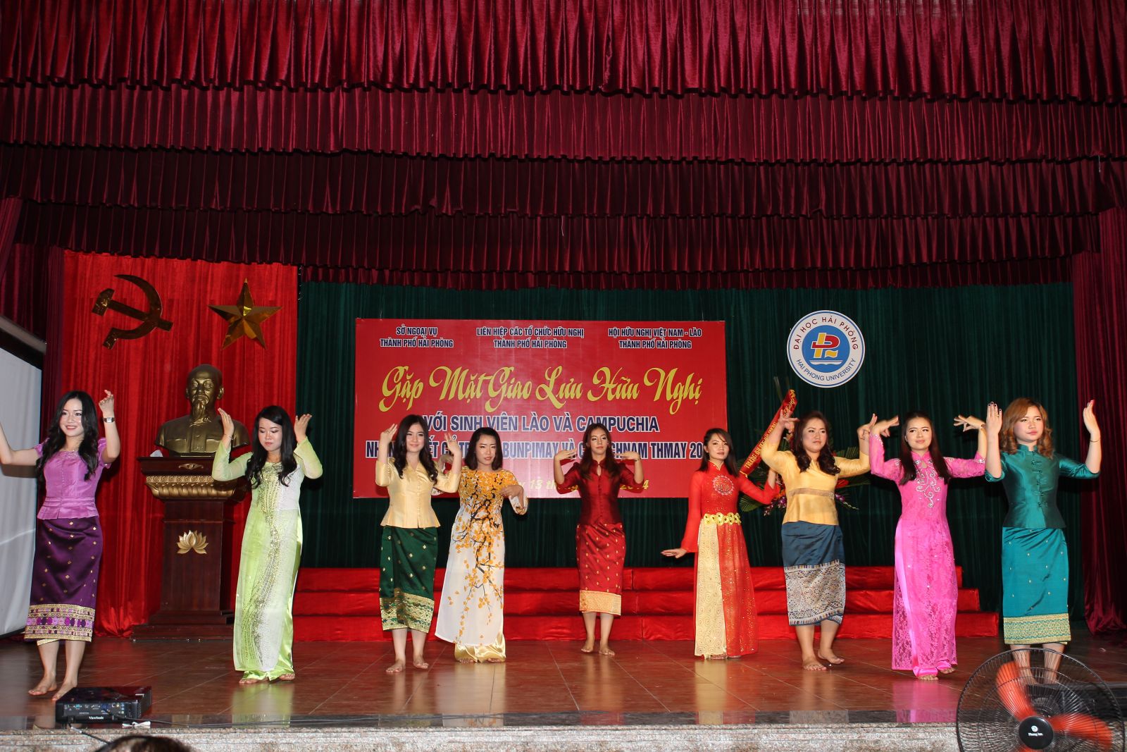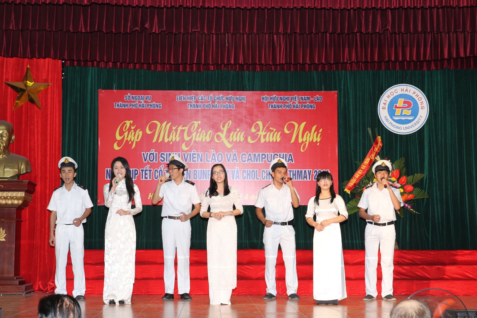 Sáng 13/4, Hội Hữu nghị Việt Nam – Lào Thành phố Hải Phòng phối hợp với Trường Đại học Hải Phòng và Trường Đại học Hàng hải Việt Nam tổ chức buổi gặp mặt, giao lưu hữu nghị với sinh viên Lào và Campuchia nhân dịp Tết cổ truyền Bunpimay và Chol Chnam Thmay 2014 cho các lưu sinh viên Lào và Campuchia đang học tập tại Thành phố.