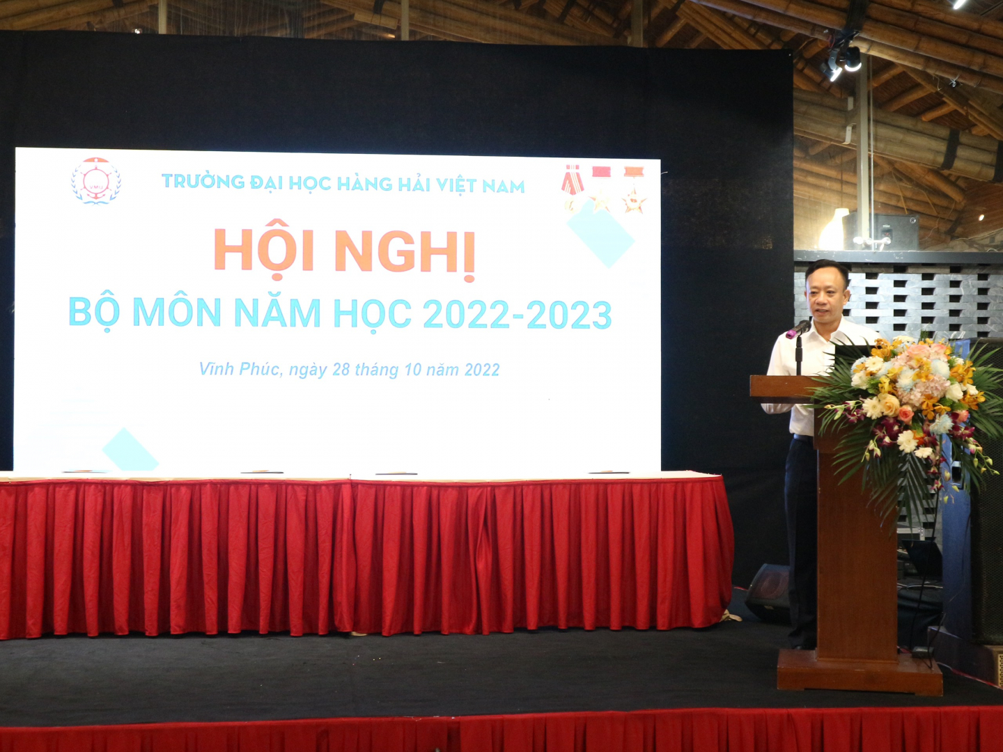 Từ ngày 27-28/10/2022, tại Vĩnh Phúc, Trường Đại học Hàng hải Việt Nam đã tổ chức Hội nghị Bộ môn năm học 2022-2023 với chủ đề “Thực hiện đổi mới chương trình đào tạo đáp ứng mục tiêu, chuẩn đầu ra; tiếp tục thực hiện chuyển đổi số trong Nhà trường” với sự tham gia của gần 135 đại biểu gồm các lãnh đạo Đảng ủy, Hội đồng Trường, Ban giám hiệu, Công đoàn, Đoàn TNCSHCM, cán bộ chủ chốt các đơn vị, Trưởng các bộ môn.