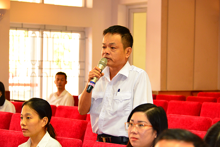 Trong không khí cởi mở, dân chủ, các đại biểu đã thảo luận tham gia ý kiến vào nội dung Báo cáo kết quả thực hiện Nghị quyết Hội nghị CB, VC và NLĐ năm học 2022-2023 và phương hướng nhiệm vụ năm học 2023-2024, đồng thời đề xuất những giải pháp cùng với Nhà trường tháo gỡ khó khăn, tiến hành đổi mới mạnh mẽ, nâng cao chất lượng đào tạo, NCKH, hợp tác quốc tế, tăng cường cơ sở vật chất, cải thiện điều kiện làm việc.