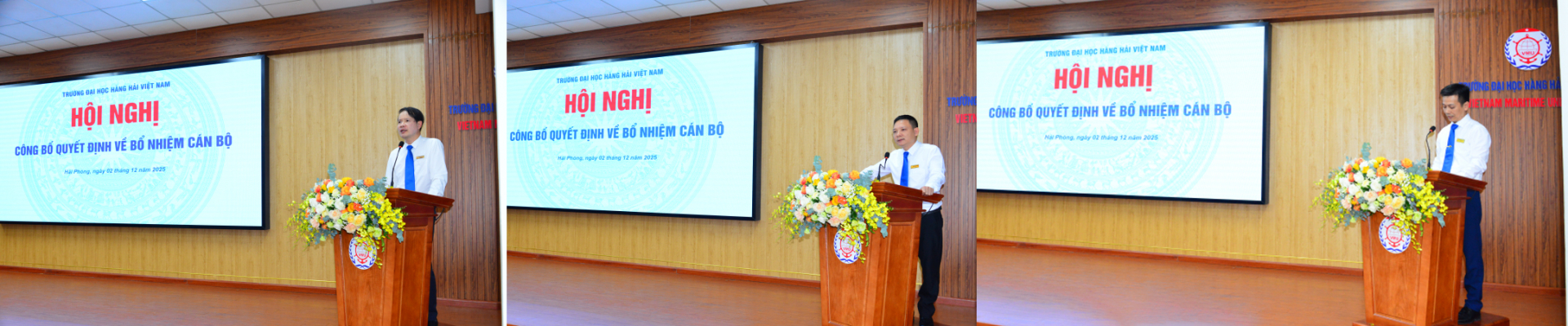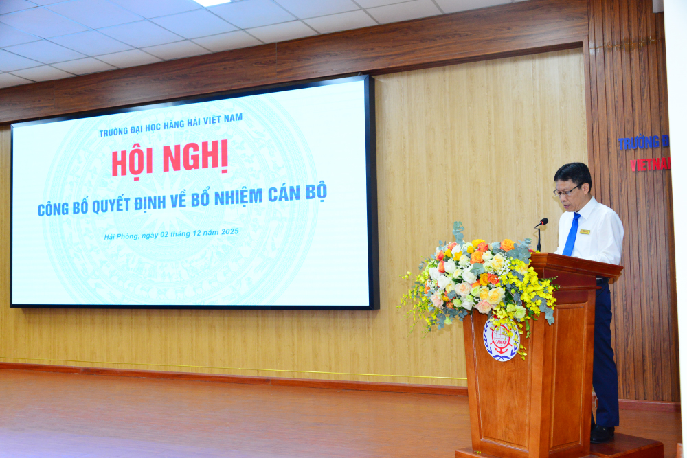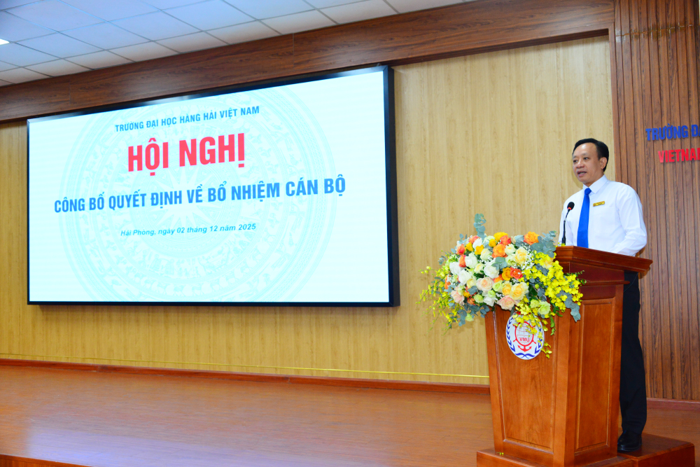 Ngày 02/12/2025, Trường Đại học Hàng hải Việt Nam đã tổ chức Hội nghị Công bố quyết định bổ nhiệm cán bộ tại các đơn vị thuộc, trực thuộc Trường.