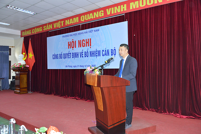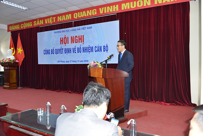 08h00 ngày 31/12/2020, Trường Đại học Hàng hải Việt Nam đã long trọng tổ chức Lễ công bố quyết định bổ nhiệm và bổ nhiệm lại cán bộ thuộc các Khoa, Viện, Phòng, Ban, Trung tâm dưới sự chủ trì của PGS.TS Phạm Xuân Dương – Phó Bí thư Đảng ủy, Hiệu trưởng Nhà trường nhằm kiện toàn và hoàn thiện bộ máy lãnh đạo các đơn vị.