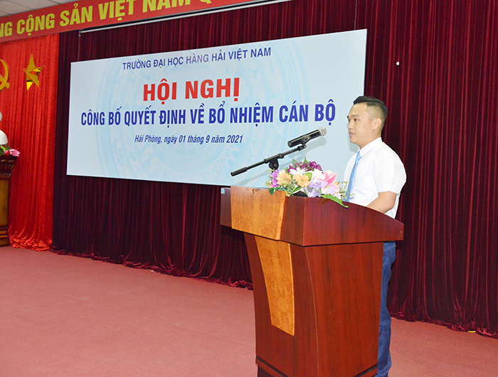 02 đồng chí mới được bổ nhiệm cảm ơn sự tin tưởng của lãnh đạo Trường Đại học Hàng hải Việt Nam đồng thời nhấn mạnh sẽ cố gắng hết mình trên cương vị mới, góp phần xây dựng VMU trở thành một Đại học lớn, có uy tín, hội nhập với khu vực và thế giới.