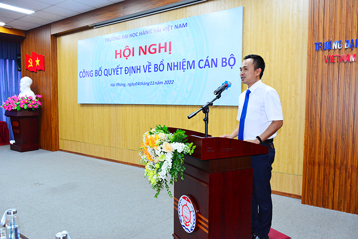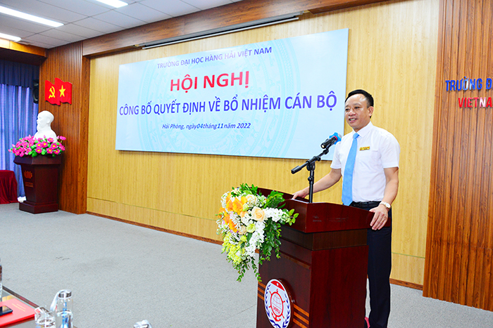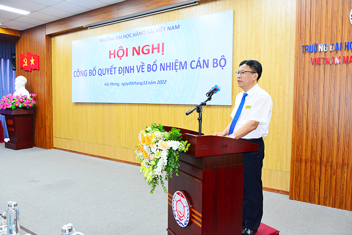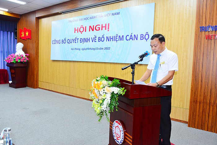 15h00 ngày 04/11/2022, Trường Đại học Hàng hải Việt Nam đã long trọng tổ chức Hội nghị công bố Quyết định về bổ nhiệm cán bộ thuộc Trường Đại học Hàng hải Việt Nam dưới sự chủ trì của PGS.TS Phạm Xuân Dương - Phó Bí thư Đảng ủy, Hiệu trưởng Nhà trường nhằm kiện toàn và hoàn thiện bộ máy lãnh đạo của Nhà trường.