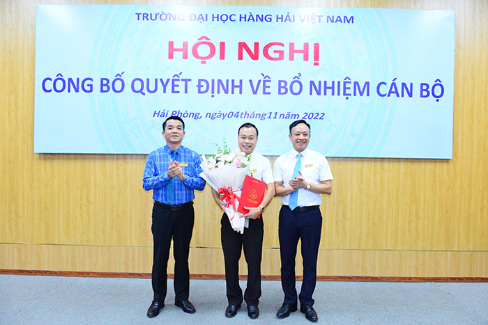 03 đồng chí mới được bổ nhiệm cảm ơn sự tin tưởng của lãnh đạo Trường Đại học Hàng hải Việt Nam đồng thời nhấn mạnh sẽ cố gắng hết mình trên cương vị mới, góp phần xây dựng VMU trở thành một Đại học lớn, có uy tín, hội nhập với khu vực và thế giới.