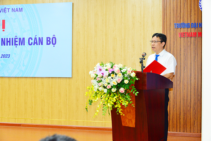 Thừa ủy quyền của Hiệu trưởng, đồng chí PGS.TS Nguyễn Huy Hào - Trưởng phòng Tổ chức - Hành chính công bố các quyết định về bổ nhiệm cán bộ: