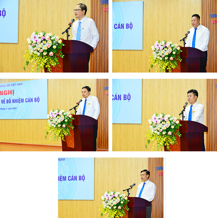 05 đồng chí mới được bổ nhiệm cảm ơn sự tin tưởng của lãnh đạo Trường Đại học Hàng hải Việt Nam đồng thời nhấn mạnh sẽ cố gắng hết mình trên cương vị mới, góp phần xây dựng VMU trở thành một Đại học lớn, có uy tín, hội nhập với khu vực và thế giới.