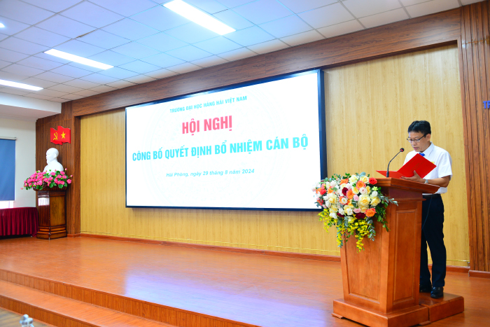 Thực hiện Nghị quyết của Ban Thường vụ Đảng ủy Trường và Nghị quyết của Hội đồng trường về công tác cán bộ, Chủ tịch Hội đồng trường và Hiệu trưởng Nhà trường đã ký các Nghị quyết, Quyết định về công tác cán bộ đối với cán bộ lãnh đạo thuộc Trường Đại học Hàng hải Việt Nam. Chiều 29/08, Trường Đại học Hàng hải Việt Nam đã tổ chức Hội nghị Công bố quyết định về bổ nhiệm cán bộ.