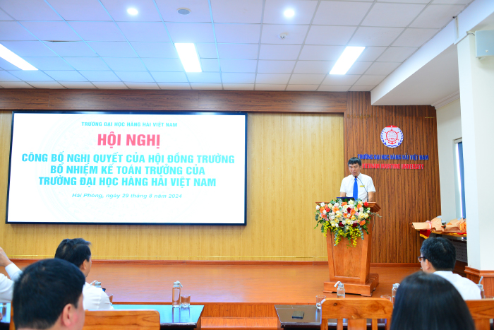 Tại Hội nghị, thừa ủy quyền của Hiệu trưởng Nhà trường, PGS.TS. Nguyễn Huy Hào - Uỷ viên Ban Thường vụ Đảng uỷ, Trưởng phòng Tổ chức - Hành chính đã công bố Quyết định giao bà Vũ Kim Trang, Phó Trưởng phòng Kế hoạch - Tài chính phụ trách Phòng Kế hoạch - Tài chính thuộc Trường Đại học Hàng hải Việt Nam kể từ ngày 01/09/2024 cho đến khi kiện toàn chức vụ Trưởng phòng Kế hoạch - Tài chính: