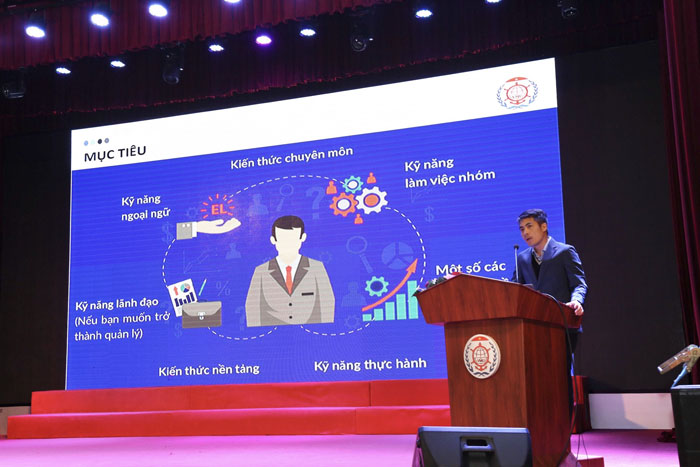 Đồng chí Nguyễn Lê Mạnh Cường, Phó Bí thư Đoàn Thanh niên Trường đã báo cáo các nhiệm vụ trọng tâm và điểm mới trong công tác Đoàn thanh niên, Hội Sinh viên trường