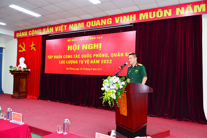 Trong 02 ngày 18,19/08/2022, Bộ Giáo dục và Đào tạo phối hợp cùng Trường Đại học Hàng hải Việt Nam tổ chức Hội nghị tập huấn công tác quốc phòng, quân sự lực lượng tự vệ năm 2022 cho các Ban Chỉ huy quân sự các trường, cơ quan, đơn vị thuộc, trực thuộc Bộ năm 2022 do Thiếu tướng, Tiến sĩ Phạm Đức Tú - Vụ trưởng Vụ Giáo dục Quốc phòng & An ninh, Bộ Giáo dục và Đào tạo chủ trì. Hội nghị nhằm mục đích nâng cao năng lực chỉ huy, quản lý, điều hành của đội ngũ cán bộ Ban Chỉ huy quân sự, đáp ứng yêu cầu, nhiệm vụ công tác quốc phòng, quân sự và sự nghiệp bảo vệ Tổ quốc trong tình hình mới.