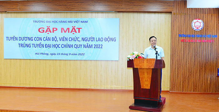 Trong kì thi THPT quốc gia vừa qua, toàn Trường có 32 cháu là con CB, GV, NLĐ đỗ vào các trường đại học trong nước và quốc tế. Thay mặt Nhà trường, PGS.TS Phạm Xuân Dương - Phó Bí thư Đảng ủy, Hiệu trưởng Nhà trường chúc mừng thành tích đã đạt được của các em tân sinh viên cũng như sự cố gắng không mệt mỏi của các bậc Cha, Mẹ. Tương lai phía trước của các em đang rộng mở, sẽ là niềm tự hào cho gia đình, cho Trường Đại học Hàng hải Việt Nam - nơi Cha Mẹ các em đang công tác.