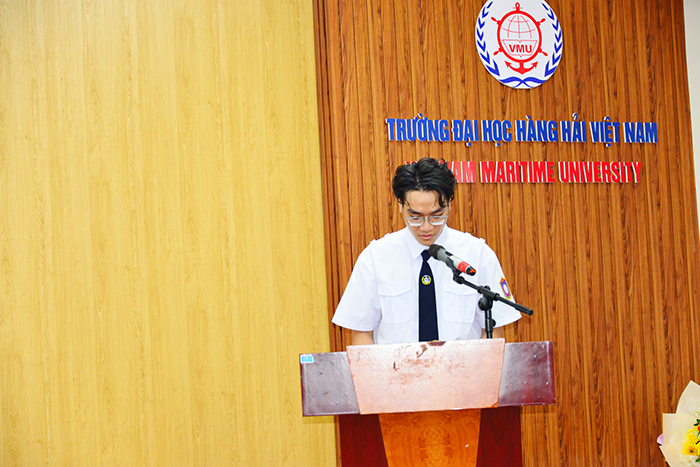 Tân sinh viên Trường Đại học Hàng hải Việt Nam, bạn Trần Nam Sơn đại diện cho các bạn đã trúng tuyển Đại học năm 2023 phát biểu cảm ơn