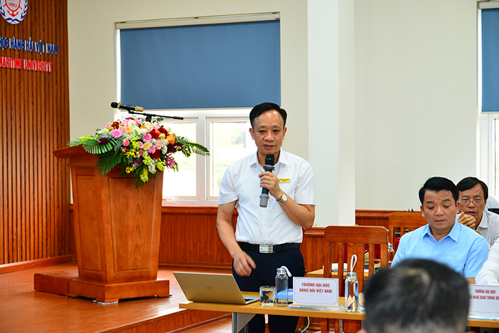 PGS.TS. Phạm Xuân Dương - Hiệu trưởng Trường Đại học Hàng hải Việt Nam báo cáo tham luận tại Hội nghị