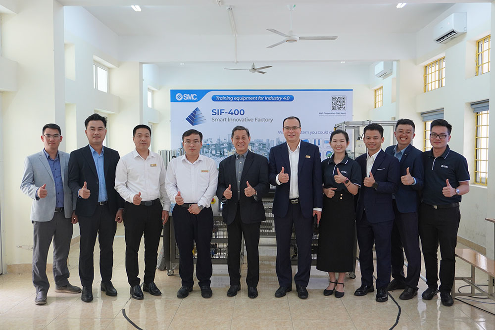 Trong khuôn khổ Hội thảo, các nội dung chuyên môn được trình bày đa dạng, thể hiện góc nhìn của doanh nghiệp và cơ sở đào tạo. Phía Nhà trường, các đơn vị chuyên môn đã trình bày thực trạng đào tạo kỹ thuật điều khiển thủy khí, định hướng phát triển ngành Cơ điện tử, cũng như chia sẻ về hệ thống cơ sở vật chất và các phòng thực hành, thí nghiệm phục vụ đào tạo các ngành kỹ thuật. Đại diện Công ty TNHH SMC Corporation Việt Nam cũng đã giới thiệu tổng quan về doanh nghiệp, đồng thời phân tích xu hướng tự động hóa cùng những thách thức trong bối cảnh công nghiệp hiện đại. Đặc biệt, Hội thảo đã giới thiệu nhiều mô hình và giải pháp công nghệ tiêu biểu như mô hình lắp ráp tự động MAP-205 I4.0, mô hình nhà máy thông minh SIF-400,... Những giải pháp này không chỉ minh họa xu hướng sản xuất hiện đại, mà còn mở ra hướng tiếp cận thực tiễn trong đào tạo, giúp sinh viên có cơ hội tiếp cận công nghệ ngay trên giảng đường.