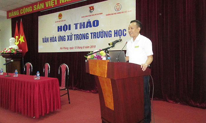 Phát biểu tại hội thảo, PGS.TS Phạm Xuân Dương- Hiệu trưởng Trường Đại học Hàng hải Việt Nam cho rằng: Văn hóa là nền tảng tinh thần của xã hội, là mục tiêu, động lực thúc đẩy sự phát triển xã hội. Văn hóa ứng xử được thể hiện qua trang phục, thái độ, hành vi, ngôn ngữ, theo những chuẩn mực văn hóa, đạo đức được xã hội thừa nhận. Văn hóa ứng xử trong trường học là hệ giá trị tư tưởng, nhận thức về quan hệ ứng xử giữa các thành viên trong nhà trường với các sự vật, hiện tượng xung quanh và với chính bản thân mỗi người. Xây dựng văn hóa ứng xử trong trường học sẽ tạo ra văn hóa học đường và động lực để phát triển, hoàn thiện nhân cách, đạo đức, trí tuệ và lối sống tốt đẹp của nhà giáo, học sinh sinh viên; góp phần nâng cao chất lượng giáo dục toàn diện, đáp ứng yêu cầu đổi mới căn bản, toàn diện giáo dục và đào tạo.
