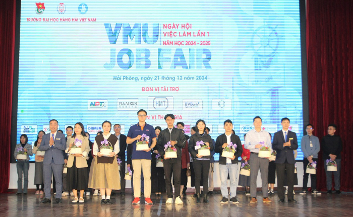 Sáng 21/12/2024, Trường Đại học Hàng hải Việt Nam đã Khai mạc Ngày hội việc làm lần 1 năm 2024-2025 - VMU JOB FAIR. Đây là hoạt động nhằm tạo điều kiện cho sinh viên, đặc biệt là các sinh viên chuẩn bị tốt nghiệp làm quen với thị trường lao động, tìm hiểu thông tin về các doanh nghiệp, các vị trí tuyển dụng; tham gia phỏng vấn, ứng tuyển các vị trí việc làm phù hợp với ngành đào tạo. Đây đồng thời cũng là dịp để các doanh nghiệp quảng bá thương hiệu và có cơ hội tiếp cận nguồn nhân lực chất lượng cao của Nhà trường.