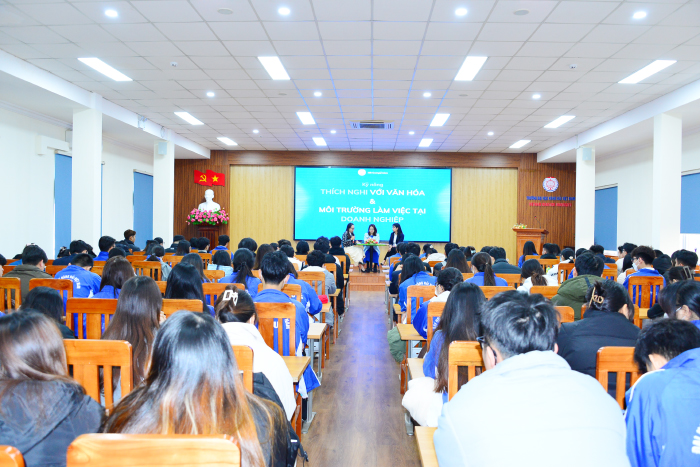 Cũng trong khuôn khổ của Ngày hội việc làm lần 1 năm 2024 - 2025, Hội thảo: “Kỹ năng hội nhập công sở” thu hút đông đảo các bạn sinh viên tham dự. Đó chính là những mẹo hay, hữu ích cho tất cả sinh viên trước khi ra Trường, ứng tuyển vào các công ty trong và ngoài nước như: Cách thích nghi văn hóa và môi trường làm việc tại các doanh nghiệp, chủ động tiếp cận và tính cầu thị trong công việc, hồ sơ xin việc cần những gì? Các nhà tuyển dụng sẽ đánh giá qua những vòng phỏng vấn sơ khảo như thế nào? Các bạn nên chuẩn bị tâm thế ra làm sao khi vào phòng phỏng vấn và sẵn sàng cho những câu hỏi của nhà tuyển dụng ở các mức độ khác nhau.