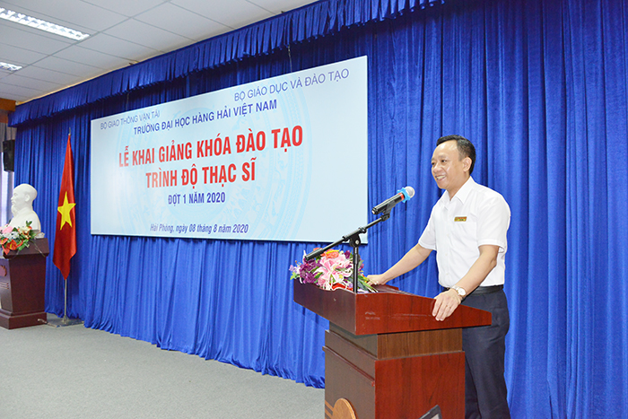 Chiều 08/08/2020, Trường Đại học Hàng hải Việt Nam tổ chức Lễ Khai giảng khóa đào tạo trình độ Thạc sĩ đợt I năm 2020 cho các học viên trúng tuyển. Tham dự Lễ Khai giảng có PGS.TS Nguyễn Khắc Khiêm – Bí thư Đảng ủy, Chủ tịch Hội đồng Trường; PGS.TS Phạm Xuân Dương – Phó Bí thư Đảng ủy, Hiệu trưởng Nhà trường cùng các đồng chí trong BCH Đảng ủy, Công đoàn, Đoàn Thanh niên, lãnh đạo các Phòng, Ban, Khoa chuyên môn tham gia trực tiếp vào công tác đào tạo, giảng dạy, hướng dẫn các học viên cùng 138 học viên cao học trúng tuyển đợt I năm 2020.