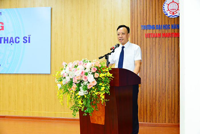 Phát biểu tại Lễ Khai giảng, PGS.TS Phạm Xuân Dương - Hiệu trưởng Nhà trường gửi lời chúc mừng đến 142 các bạn học viên cao học đã trúng tuyển. Thầy cũng chúc mừng các bạn vì đã sáng suốt lựa chọn Trường Đại học Hàng hải Việt Nam là điểm bắt đầu để khám phá một chân trời tri thức mới, vươn tới những học vị cao hơn.