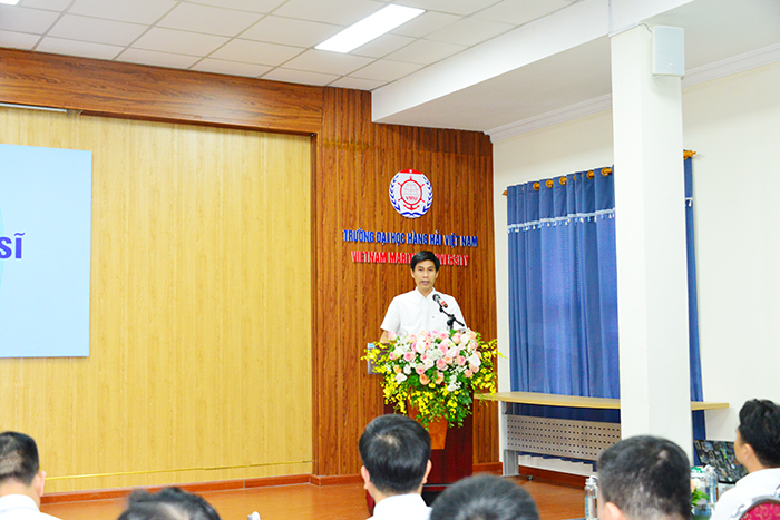 Thay mặt cho học viên trúng tuyển, học viên Nguyễn Văn Chương phát biểu, chia sẻ niềm tự hào khi được học tập, nghiên cứu tại một ngôi trường uy tín như Trường Đại học Hàng hải Việt Nam và hứa sẽ cố gắng rèn luyện để nâng cao kiến thức chuyên môn nghiệp vụ, đáp ứng nhu cầu công tác.