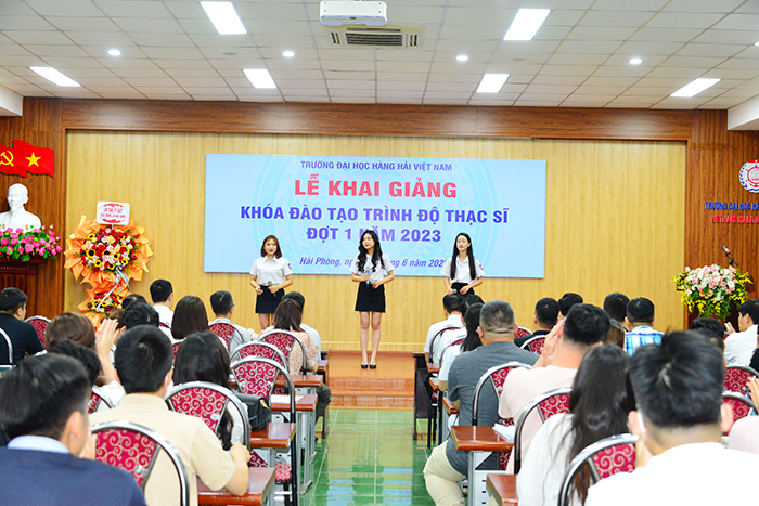 Chiều 17/06, Trường Đại học Hàng hải Việt Nam tổ chức Lễ Khai giảng khóa đào tạo trình độ Thạc sĩ đợt 1 năm 2023. Tham dự buổi lễ có PGS.TS Phạm Xuân Dương - Hiệu trưởng Nhà trường; đại diện các đoàn thể, phòng ban của Trường, lãnh đạo các Khoa/Viện chuyên môn tham gia trực tiếp vào công tác đào tạo, giảng dạy, các nhà khoa học, cùng 142 học viên cao học trúng tuyển đợt 1 năm 2023.